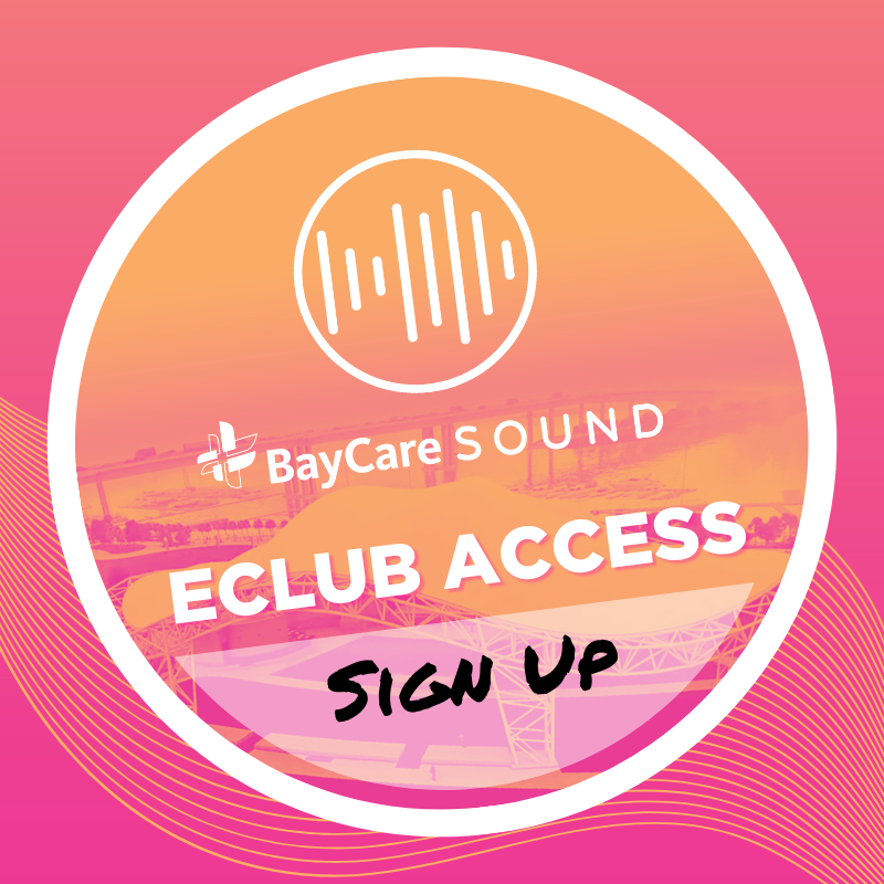 For exclusive access sent directly to your email or phone, sign up for show pre-sales, special offers + more with The BayCare Sound's FREE eClub!